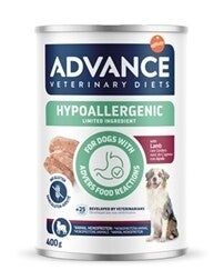 Advance Veterinary Diet Dog Hypoallergenic is een volledig dieetvoeder voor volwassen honden met voedselovergevoeligheid. Is glutenvrij, waardoor het helpt het risico op allergische reacties te beperken. De formule is licht verteerbaar en verrijkt met omega 6-vetzuren en zink ter ondersteuning van een gezonde huid en glanzende vacht. Dankzij de zachte patéstructuur is het voer smakelijk en geschikt voor honden met een gevoelige spijsvertering of verminderde eetlust.