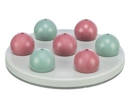 Bord met 7 balvormen. Uw kat moet de vormen verplaatsen om bij de snoepjes te komen. Voor fysieke en mentale stimulering. Met anti-slip bodem.