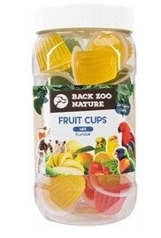 Het Back Zoo Nature Fruitcup Mix Vogel 6 stuks is een heerlijke snack voor vogels, gemaakt van gelei met fruitsmaak en rijk aan suikers voor veel energie. Welke smaak is favoriet bij jouw dier? In deze handige, hersluitbare pot vind je diverse populaire smaken van de bekende Back Zoo Nature Fruitkuipjes! Vogels die in het wild veel fruit eten krijgen daarbij veel suikers en diverse smaken binnen, wat jij jouw dier kunt bieden met deze lekkere fruitkuipjes in een mix van verschillende smaken. Geef de fruitkuipjes uit het plastic potje of in een speciale houder. Ook geschikt voor sommige reptielen en knaagdieren! Fruitkuipjes Mix 6 stuks in 6 smaken.